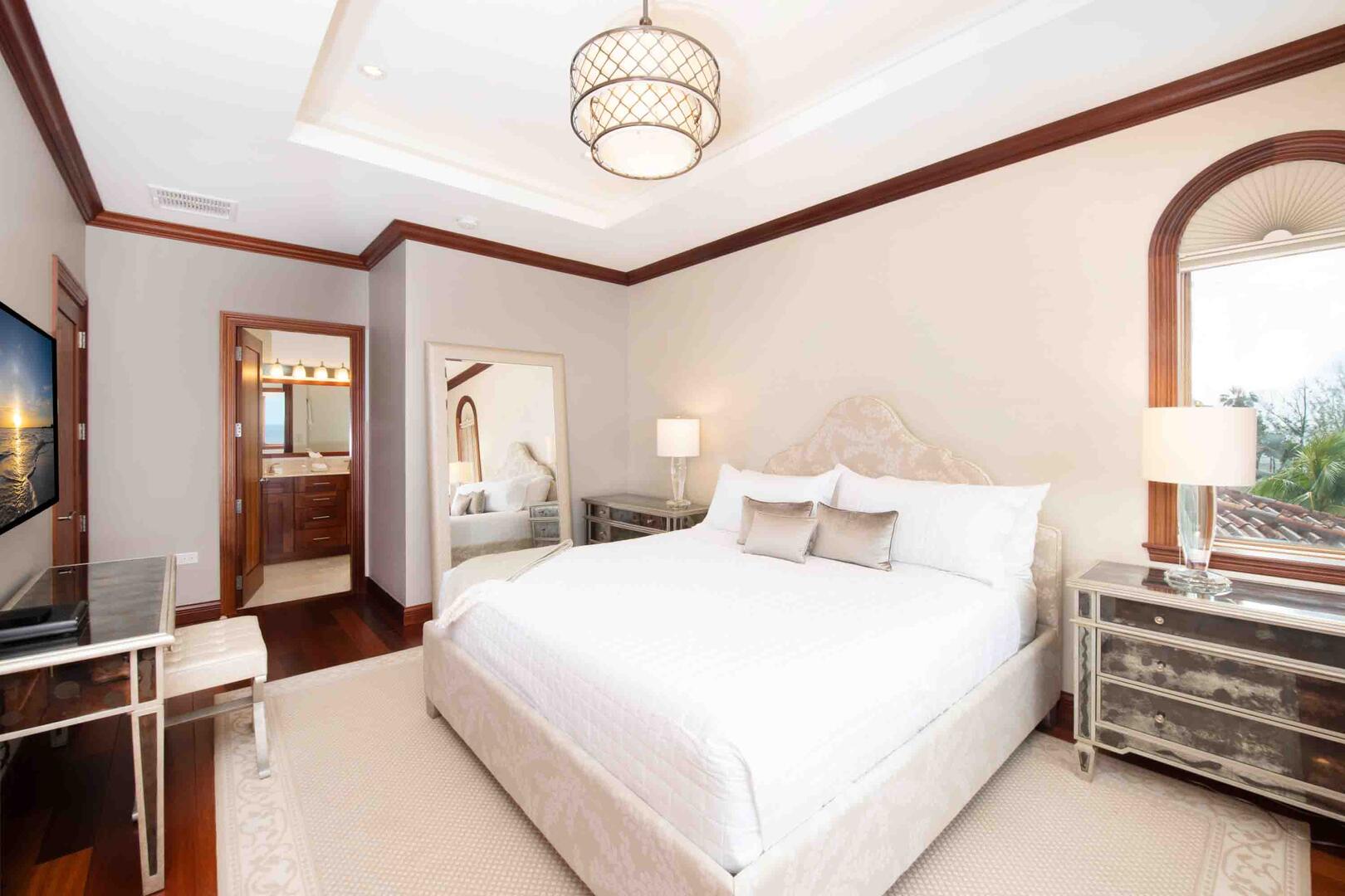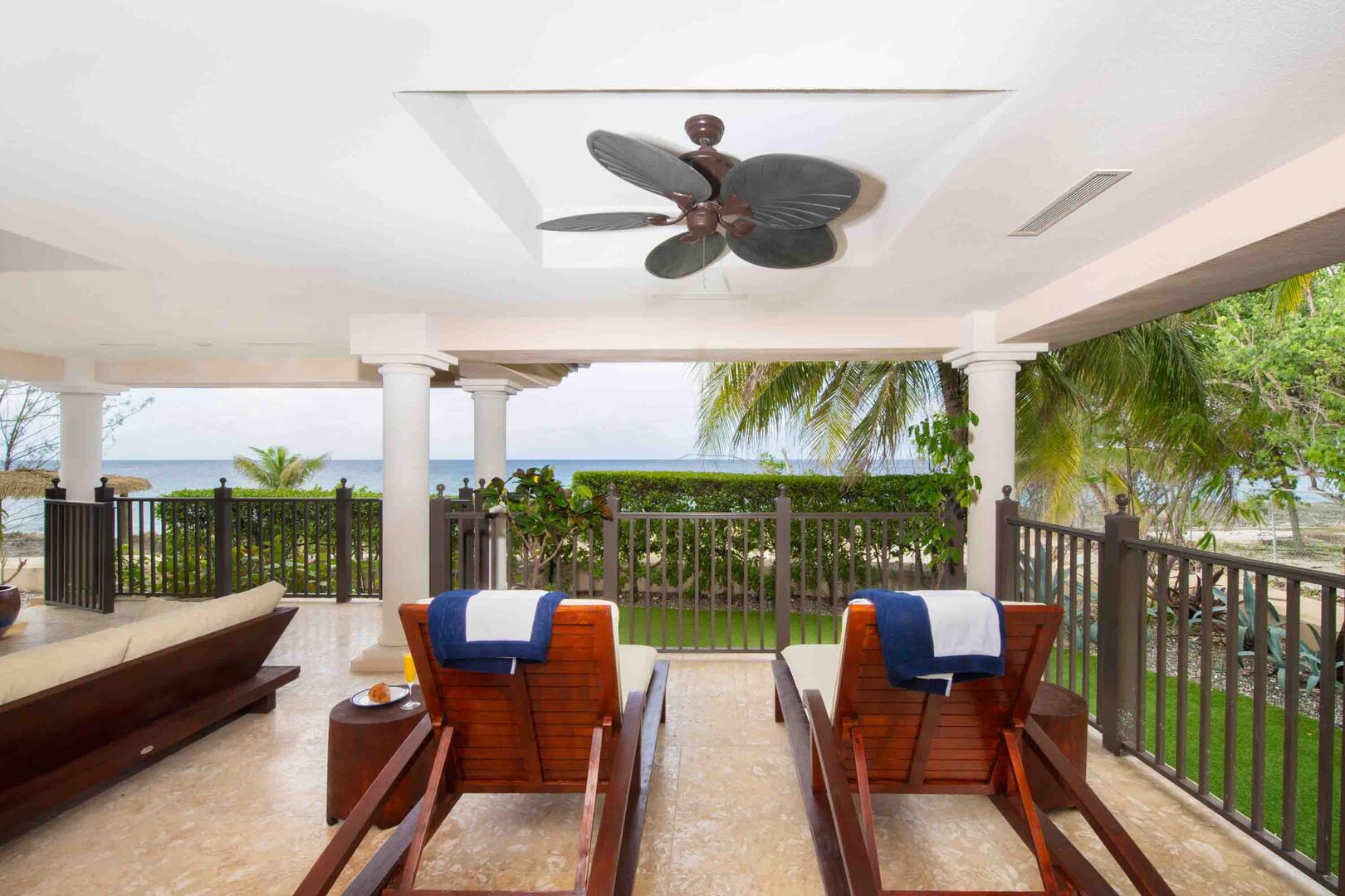 This multi-level residence offers an open-concept design, with bedroom suites on the top and ground levels. The living, dining, and kitchen are located on the main level and open onto a private ocean veranda with lounging areas. Three of the four bedroom suites have breathtaking direct ocean views. The fourth bedroom has a beautiful Juliet balcony with a garden and partial sea views. The stair landing includes a dedicated workspace perfect for those in need of working while away from home.
