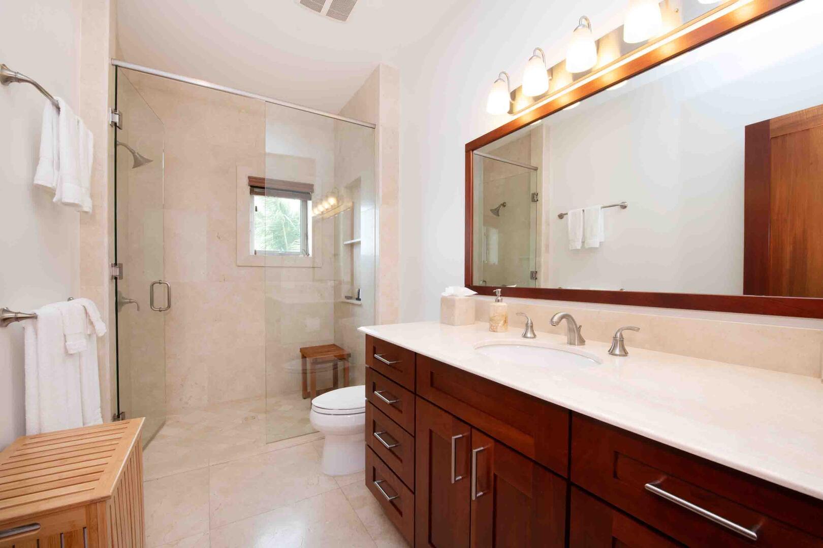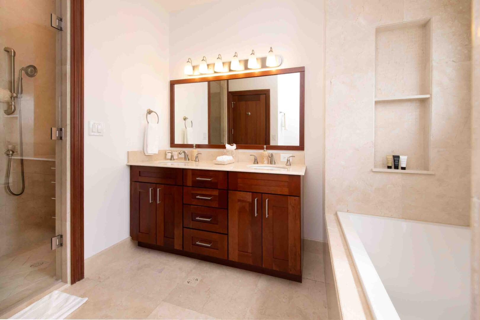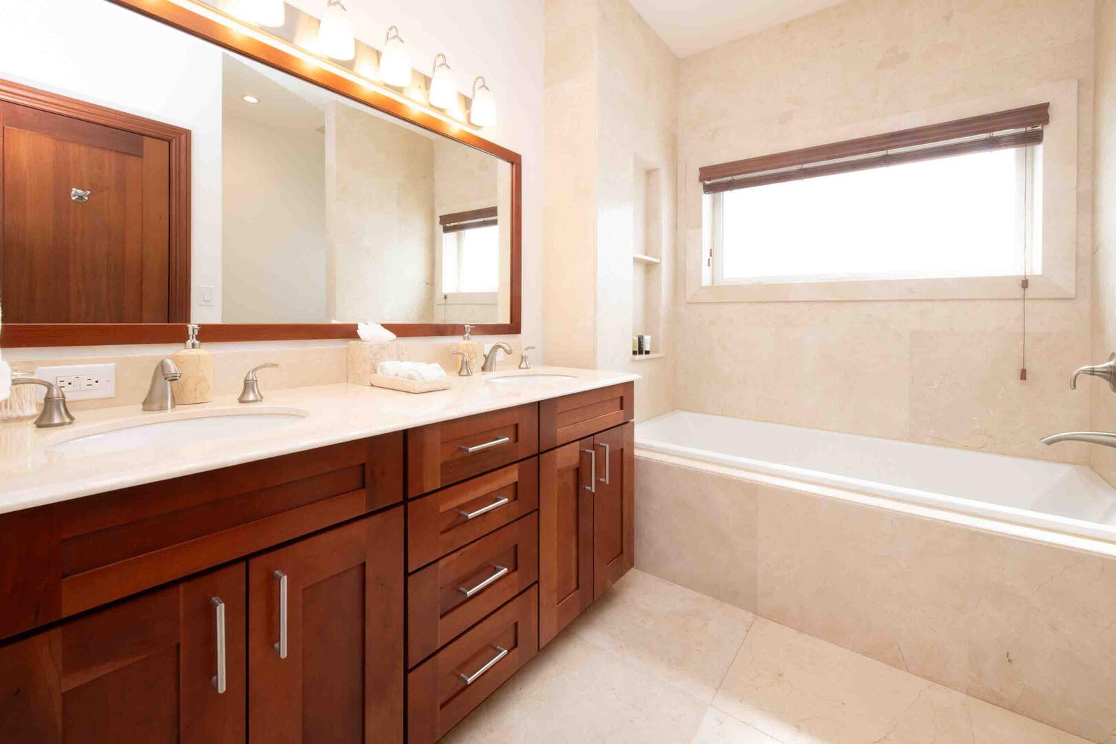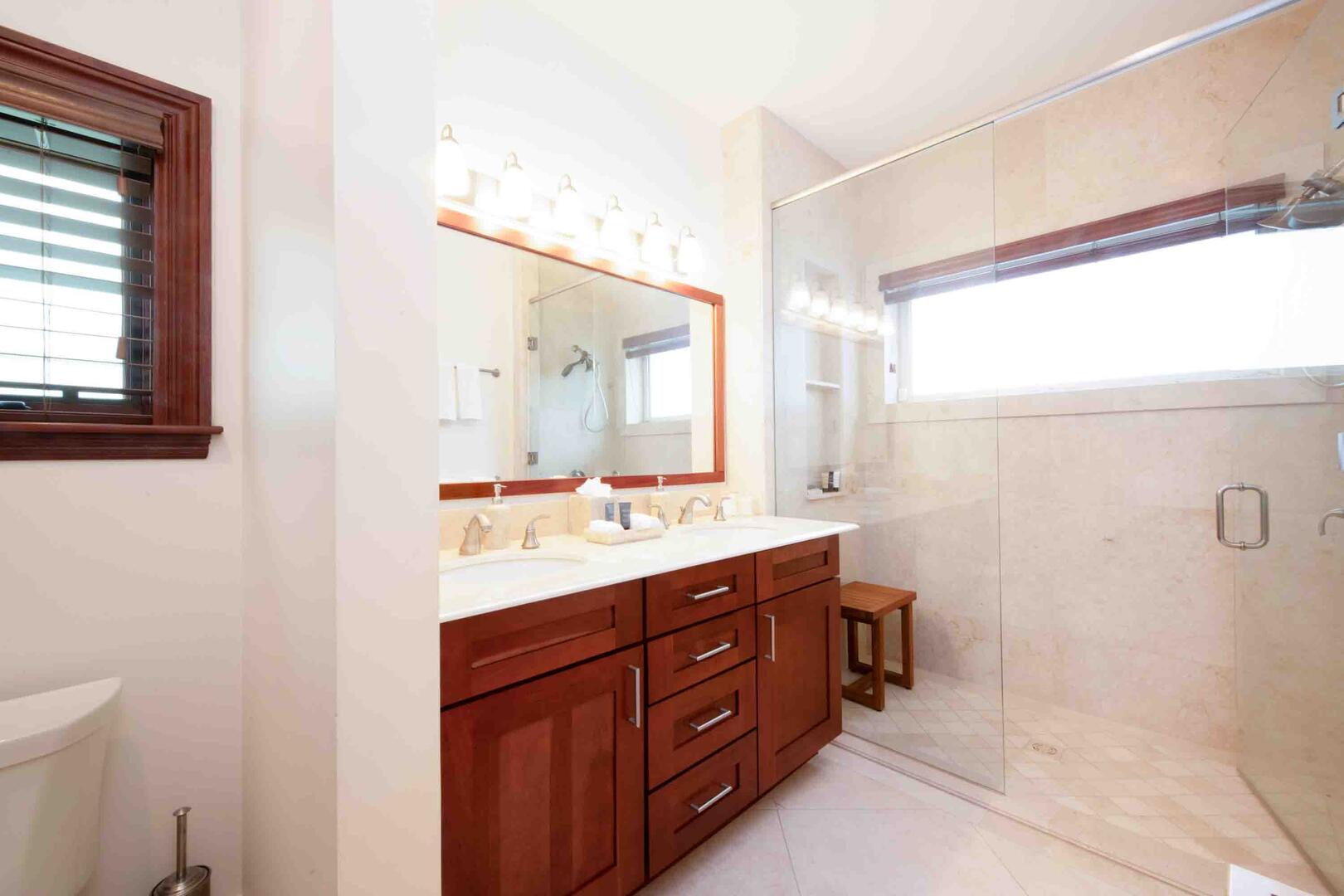 - Bedroom 2: Second primary suite, upper level, king bed, ocean view, SmartTV, ensuite dual vanity, soaking bathtub with separate shower.