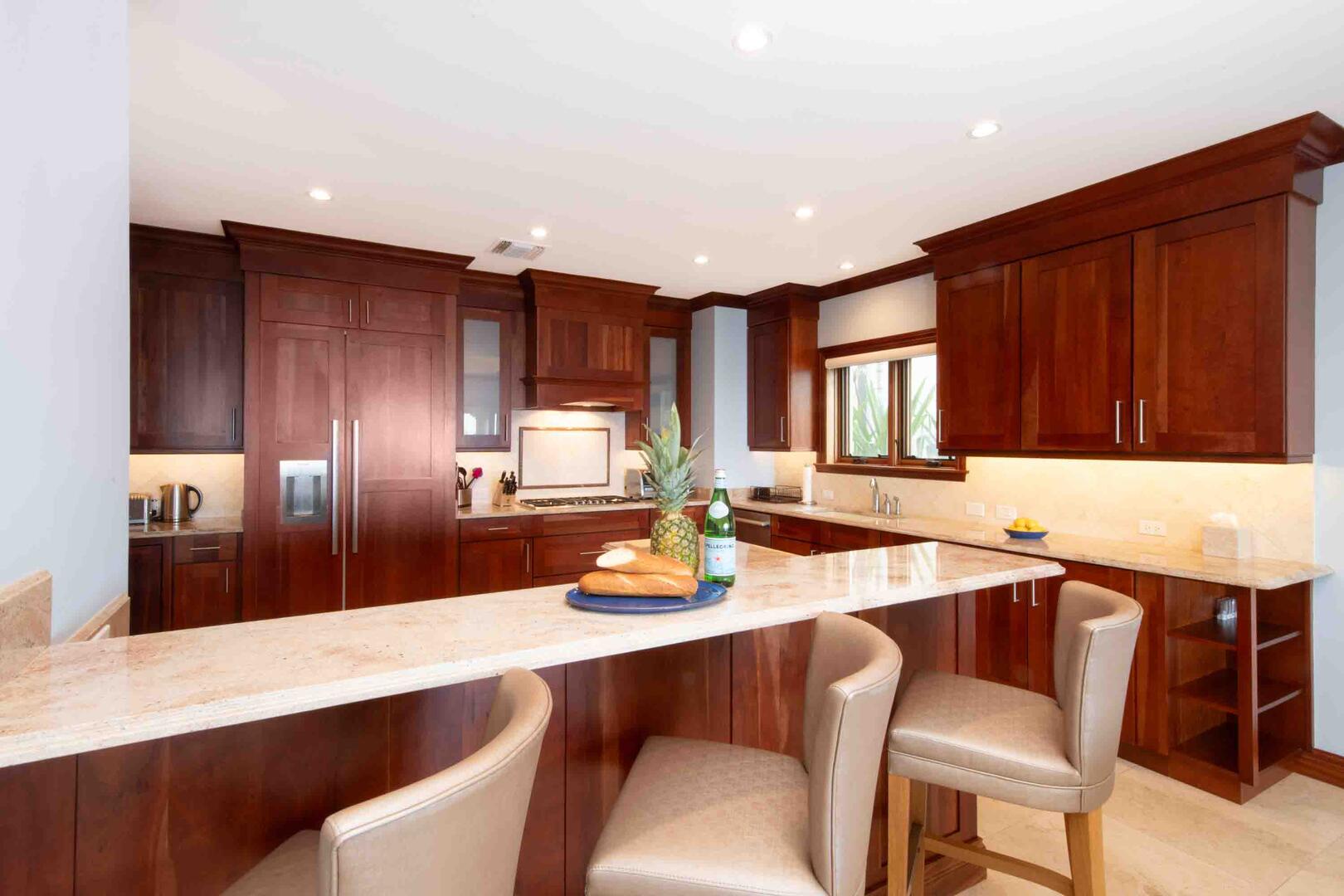 - A gourmet kitchen equipped with high-end Thermador appliances and a large peninsula.
